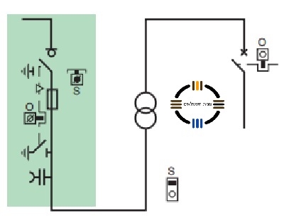 באיור שלהלן מובאת יחידה מודולרית המותקנת במסדרי מתח גבוה. היחידה מצוידת באמצעים למניעת פעולה תפעולית לא רצויה, הכוללים חיגור מכאני או חשמלי מהי התשובה המנוגדת לעקרונות התפעוליים הנכונים