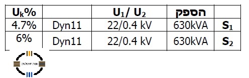 לצורך הגדלת חיבור במפעל ל 1150KVA מחברים שנאי נוסף 2S .