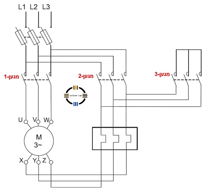 בשלב ראשון מגען- 3 נסגר ובשלב שני מגען- 3 נפתח ומגען- 2 נסגר