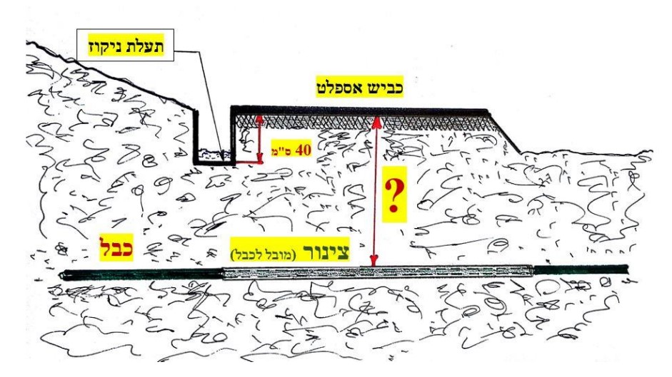 תוואי הצינור שבו יושחל הכבל, מצטלב עם כביש אספלט קיים. לצד הכביש קיימת תעלת ניקוז בעומק 40 ס"מ. מהו עומק ההטמנה המזערי של הצינור בהתאם לתקנות החשמל?