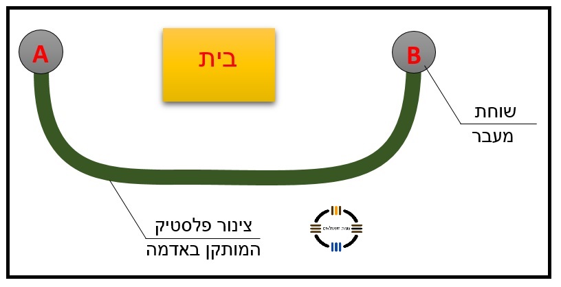 בתמונה מוצגת תצורת תכנון (ממבט על), המראה התקנת מובל מסוג צינור-פלסטיק המותקן באדמה. הצינור יותקן בין שוחה A לבין שוחה B .