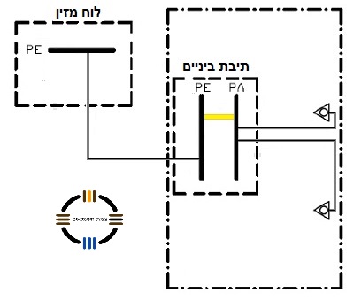 (ב) פס PE ופס PA שבתיבת הביניים יגושרו ביניהם באמצעות מוליך שחתכו 16 ממ"ר לפחות; גישור כאמור יהיה נוח לגישה וניתן לפירוק באמצעות כלים בלבד.