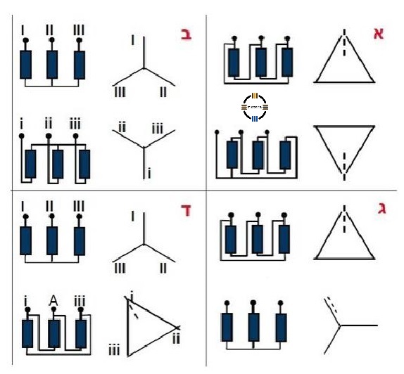 11- ע"פ כיוון השעון, במקרה שלנו התבקשנו לשעה 1 זה פשוט להפוך את סדר הפאזות בראשוני.