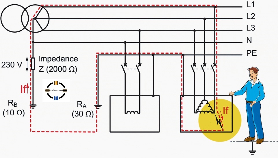 זרם התקלה If=0.112A , ומתח התקלה Uf=3.38V , לכן האדם לא יתחשמל