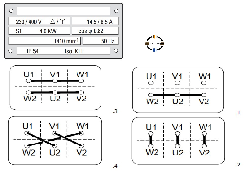 בתמונה מופיעה לוחית נתונים של מנוע חשמלי בהנחה שההזנה למנוע היא תלת מופעית ( 400V ), כיצד יש לחווט את סלילי המנוע?